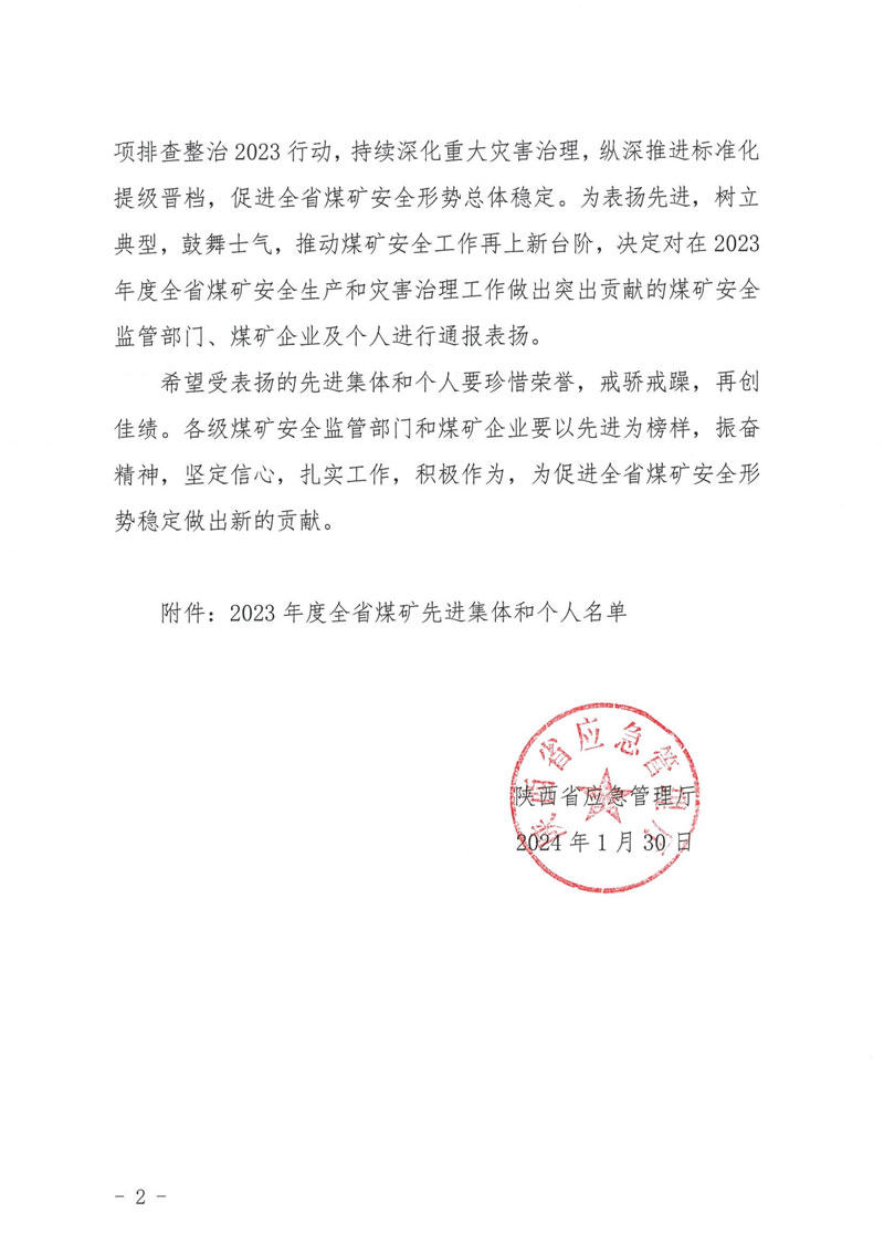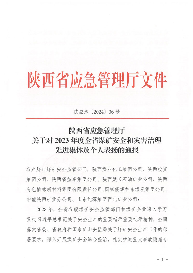 2月1日,陜西省應(yīng)急管理廳在西安國際會(huì)議中心組織召開全省煤礦安全工作會(huì)議,對(duì)2023年全省煤礦安全先進(jìn)集體和個(gè)人通報(bào)表揚(yáng),匯能集團(tuán)所屬錕源煤礦榮獲“陜西省煤礦企業(yè)安全先進(jìn)集體”稱號(hào),這是繼錕源煤礦通過國家一級(jí)安全生產(chǎn)標(biāo)準(zhǔn)化管理體系現(xiàn)場(chǎng)定級(jí)考核后,取得的又一項(xiàng)重大殊榮。